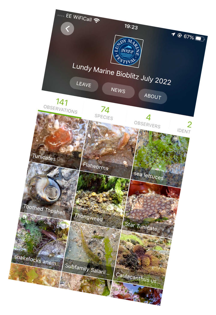 - If you’re not sure what a particular species might be, take a photo of it with your mobile phone, upload it to iNaturalist and then wait to see what experts worldwide think it may be – simples! The app is free to download and to use, though it takes a little while to set up your personal settings. Several people used a version of the app (specially set up for the Lundy Marine Bioblitz in July 2022) and found it really helpful.