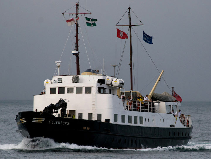 Most visitors to Lundy will arrive on board the island’s ship, MS Oldenburg. The ship operates out of the north Devon coastal towns of Bideford (her home port) and Ilfracombe, the point of departure depending on the tidal cycle (spring tides providing enough water to clear the sand bar at the entrance to the Taw-Torridge estuary). The sailing time from either of these points of departure takes about two hours. She can carry 267 passengers, most of whom will be day visitors, with the remainder being those intending to stay on the island. Sailings from Ilfracombe allow passengers about 4 hours to explore the island; sailings from Bideford allow about 6 hours. Further information about sailing to Lundy on board the MS Oldenburg and for booking tickets can be found on the Landmark Trust/Lundy website here.
