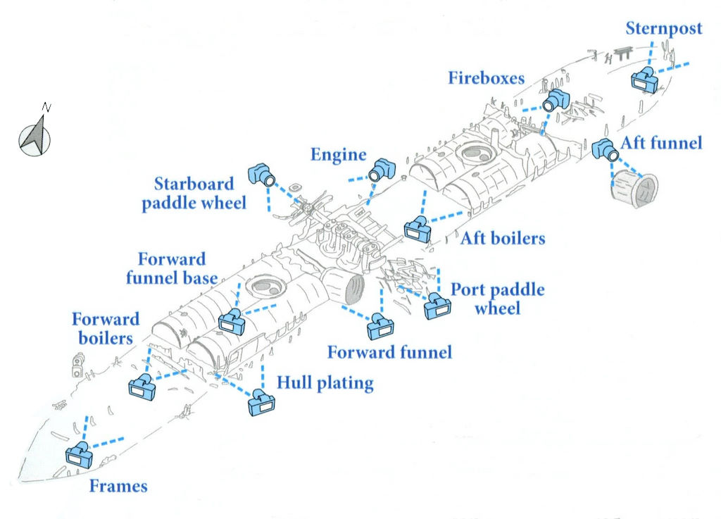 Monitoring viewpoints on the wreck of the PS Iona II © Peta Knott, Iona II Dive Trail, 2015